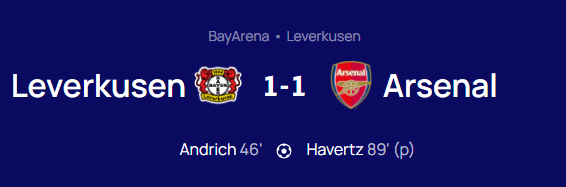 There was no real data suggesting a draw before kickoff. What really stood out was how well Bayer Leverkusen managed to limit Arsenal’s set-piece opportunities. Arsenal only earned three corners the entire match, which is extremely low for them.